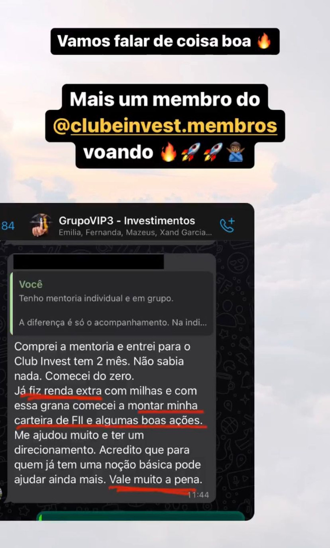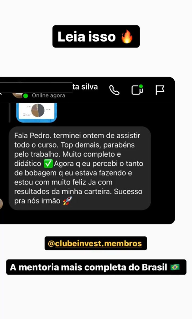 Após mentorar centenas de alunos, fundei no final 2021 o mentoria MAIS COMPLETA SOBRE FINANÇAS E INVESTIMENTOS do Brasil, que já conta com mais de 450 membros, o CLUBE INVEST.