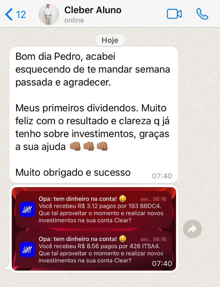Ao final da mentoria o aluno terá uma carteira, PRONTA, SÓLIDA, SEGURA e DIVERSIFICADA, gerando renda passiva mensal, e estará preparado e com conhecimento suficiente para conduzir essa carteira com total autonomia para o resto da vida!