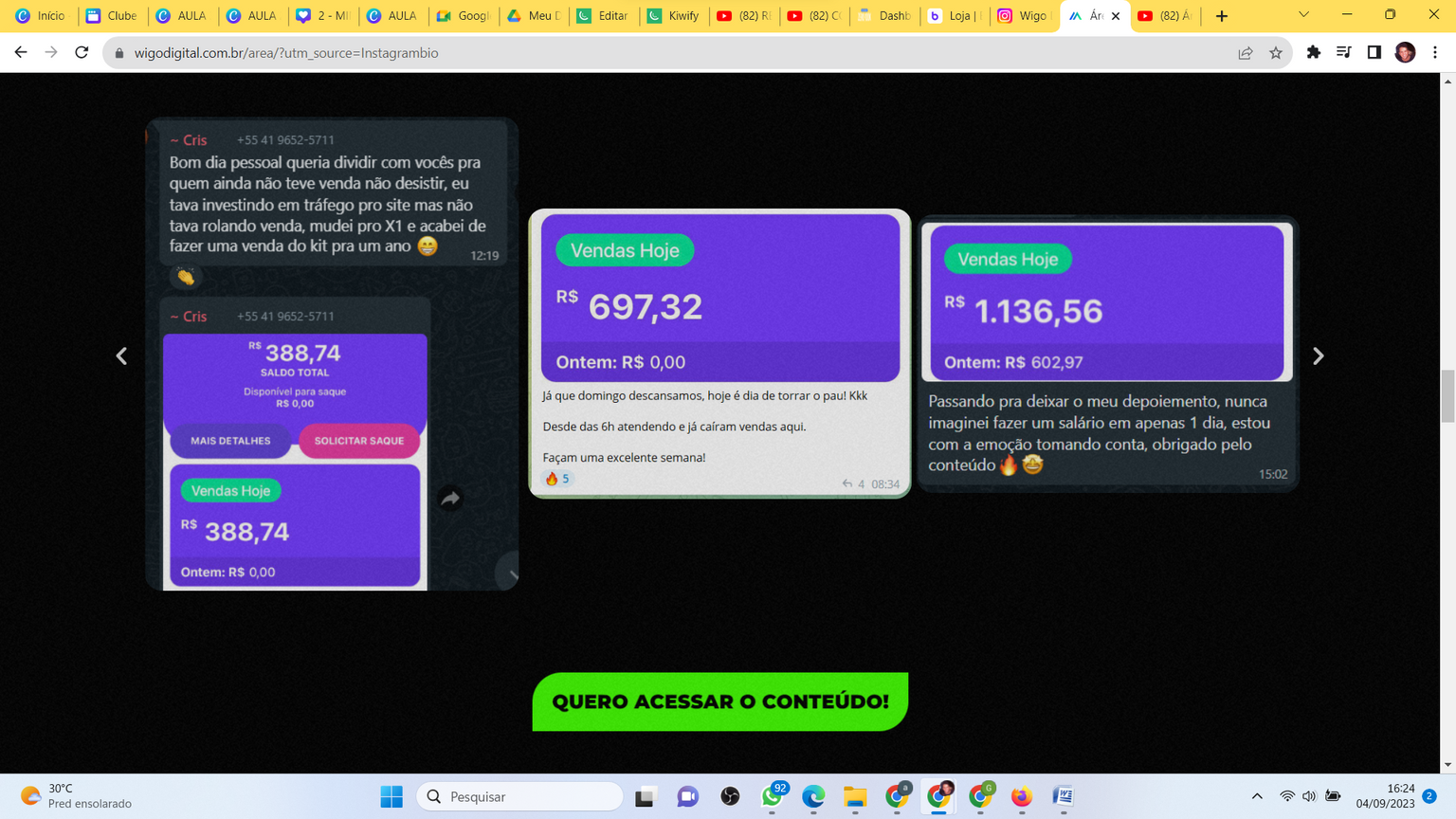 Aqui você terá acesso ao treinamento completo do casal que hoje é um dos maiores nomes do mercado digital. Com a @wigo.digital você vai aprender a vender produtos físicos (sem precisar aparecer) através do tráfego pago! Na mentoria é disponibilizado produtos exclusivos e validados, bem como o passo a passo com as estratégias pra você vendê-los e faturar até 10k por mês.