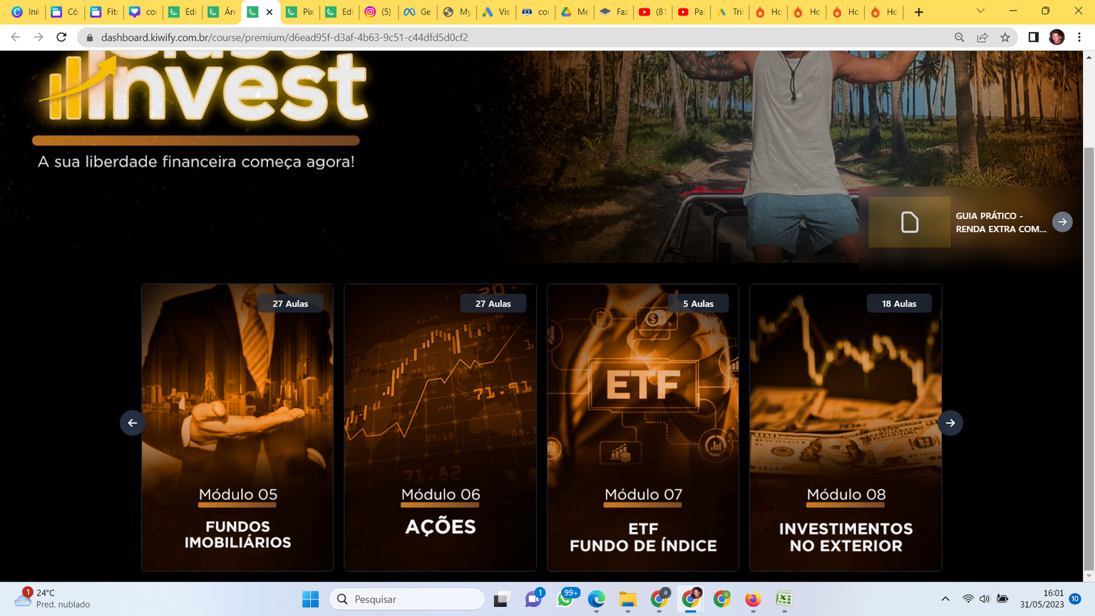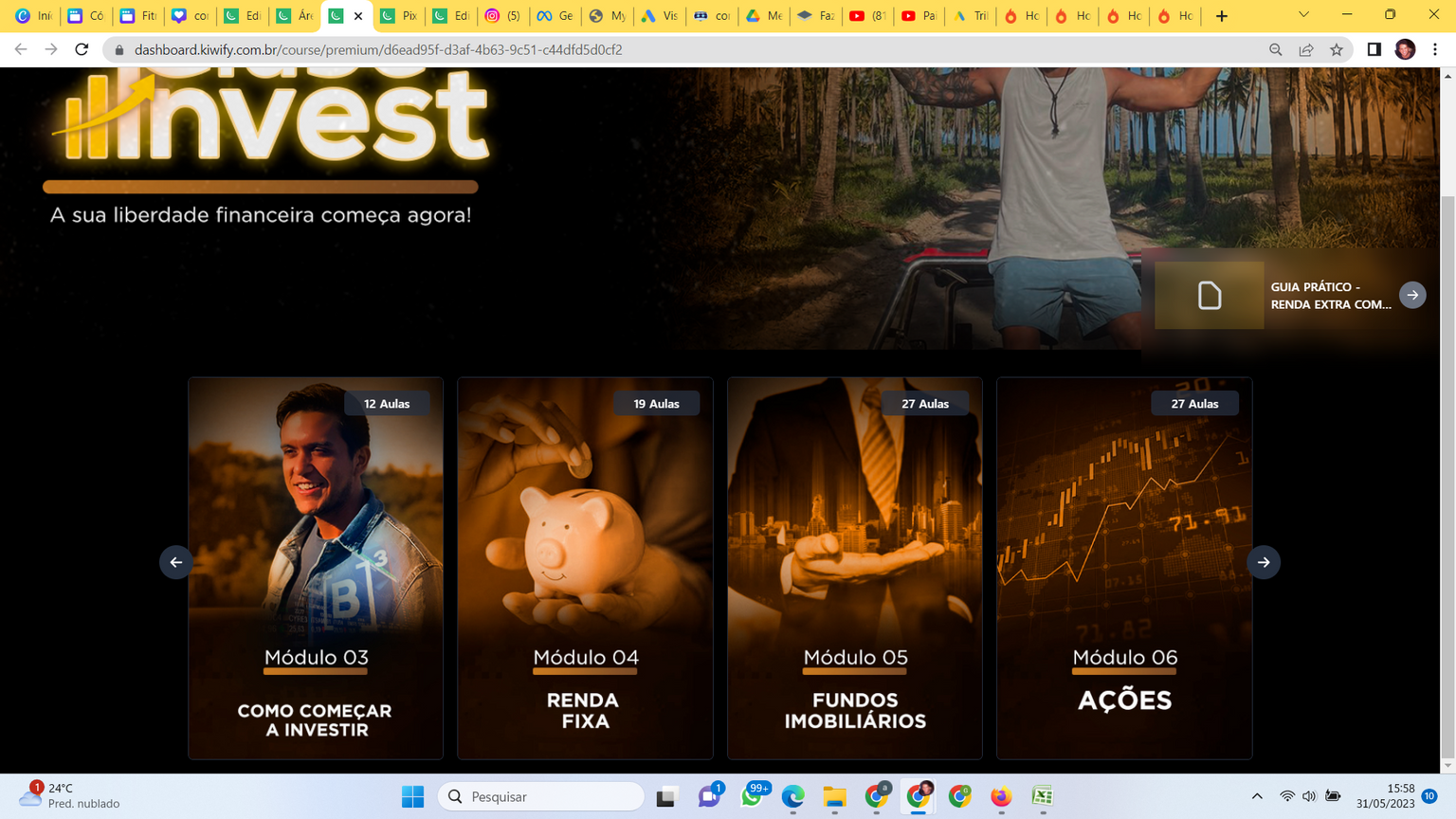 Investir é mais do que apenas guardar dinheiro. É um conhecimento poderoso que pode abrir portas e transformar seu futuro. Neste treinamento, você aprenderá as estratégias e técnicas comprovadas que os investidores bem-sucedidos usam para maximizar seus retornos e minimizar os riscos. Você vai montar uma carteira de investimentos blindada, geradora de renda passiva mensal em reais e em dólar.